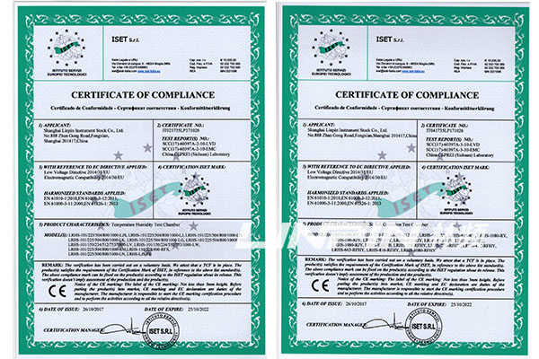 CE認(rèn)證是產(chǎn)品進(jìn)入歐盟市場(chǎng)所必須的安全認(rèn)證,林頻儀器為順應(yīng)歐盟市場(chǎng)需求,擴(kuò)大設(shè)備出口能力,經(jīng)過(guò)公司員工的共同努力,在技術(shù)儲(chǔ)備和管理工作進(jìn)行系統(tǒng)完善后,公司順利通過(guò)歐盟CE認(rèn)證證書。CE證書的獲得驗(yàn)證了林頻儀器生產(chǎn)的環(huán)境試驗(yàn)箱已經(jīng)達(dá)到歐盟指令規(guī)定的要求,是企業(yè)對(duì)用戶的一種承諾,增加了用戶對(duì)設(shè)備的信任程度,在質(zhì)量性能和安全性能方面都符合歐盟國(guó)家的出口質(zhì)量標(biāo)準(zhǔn),為公司大力開(kāi)拓國(guó)際市場(chǎng)奠定了良好的基礎(chǔ)。
